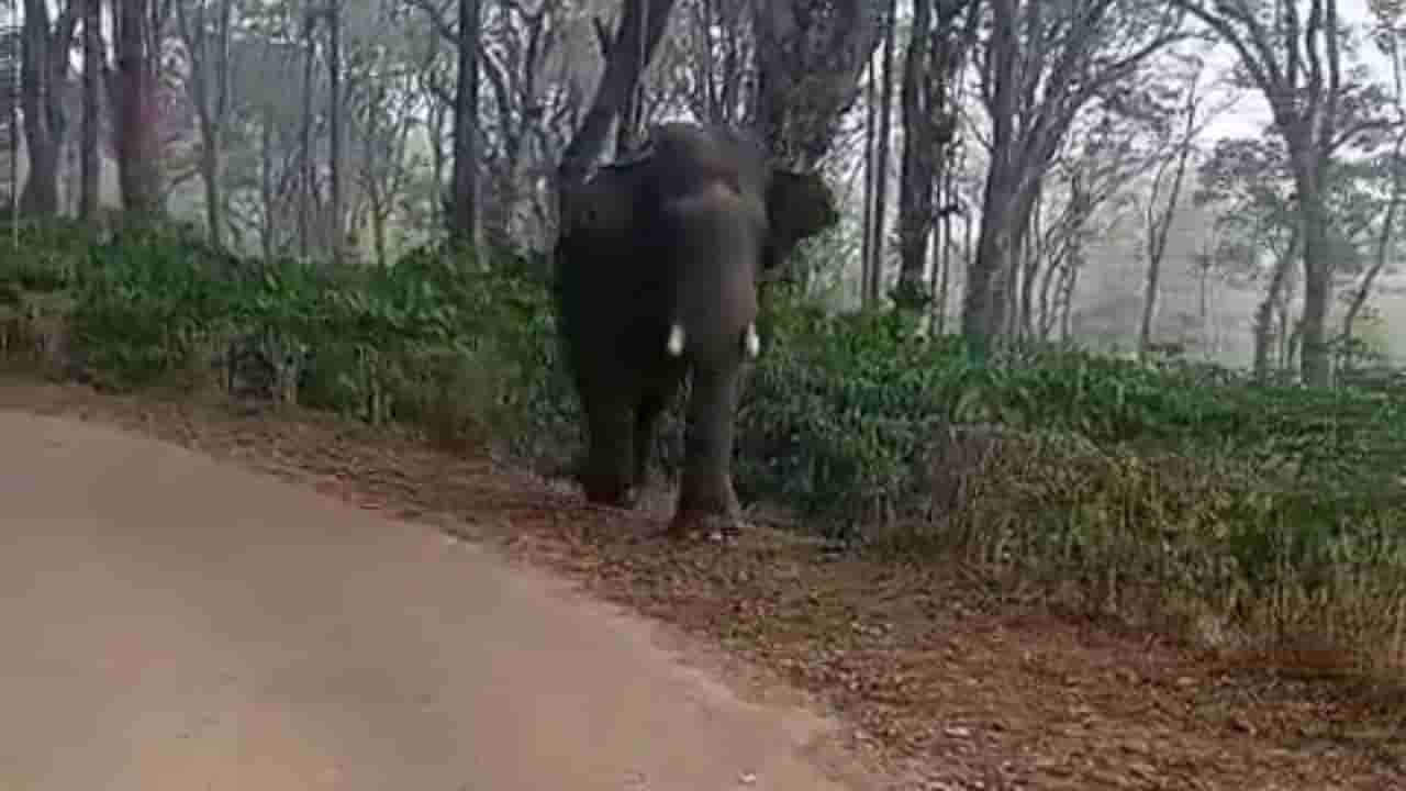ವಿರಾಜಪೇಟೆ: ಕಿರಿದಾದ ರಸ್ತೆಯಲ್ಲಿ ಸ್ಕೂಲ್ ಬಸ್ ಅಟ್ಟಾಡಿಸಿದ ಭಾರಿ ಗಾತ್ರದ ಒಂಟಿ ಸಲಗ!