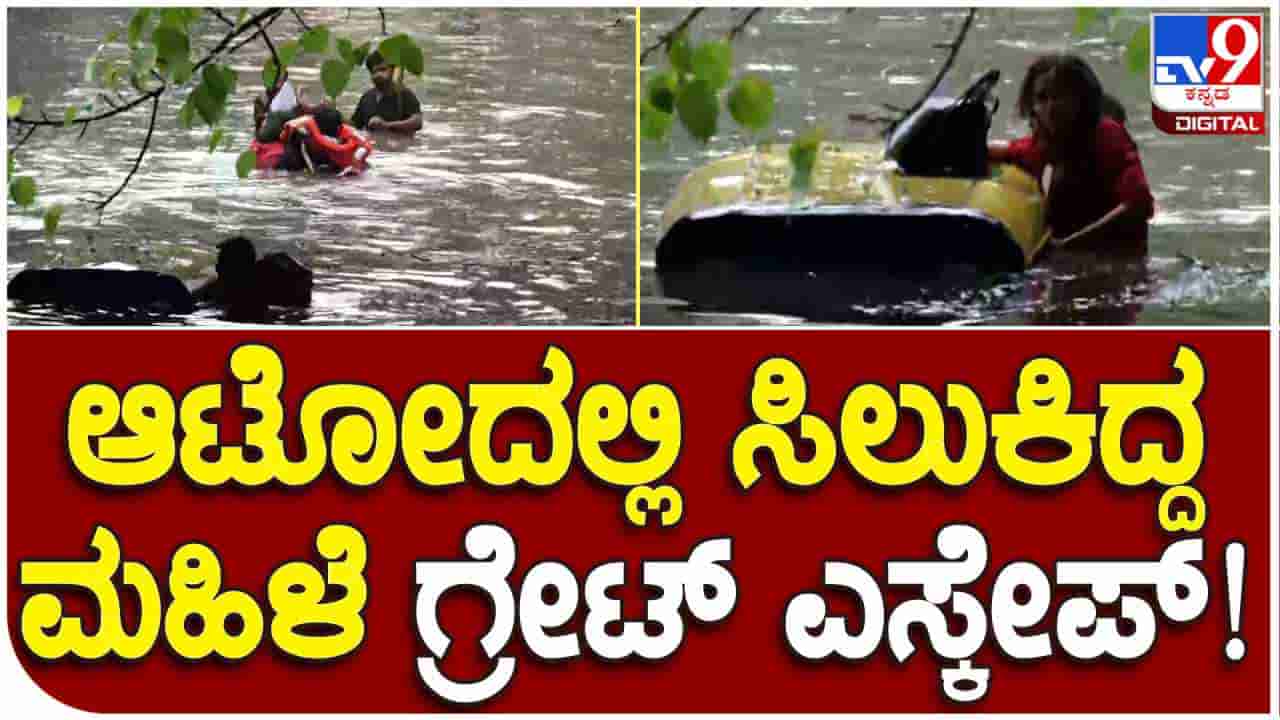 Bangalore rain: ಕೆಆರ್ ಸರ್ಕಲ್ನಲ್ಲಿ ಮುಳುಗಿದ ಆಟೋ, ಮಹಿಳೆ ಗ್ರೇಟ್ ಎಸ್ಕೇಪ್