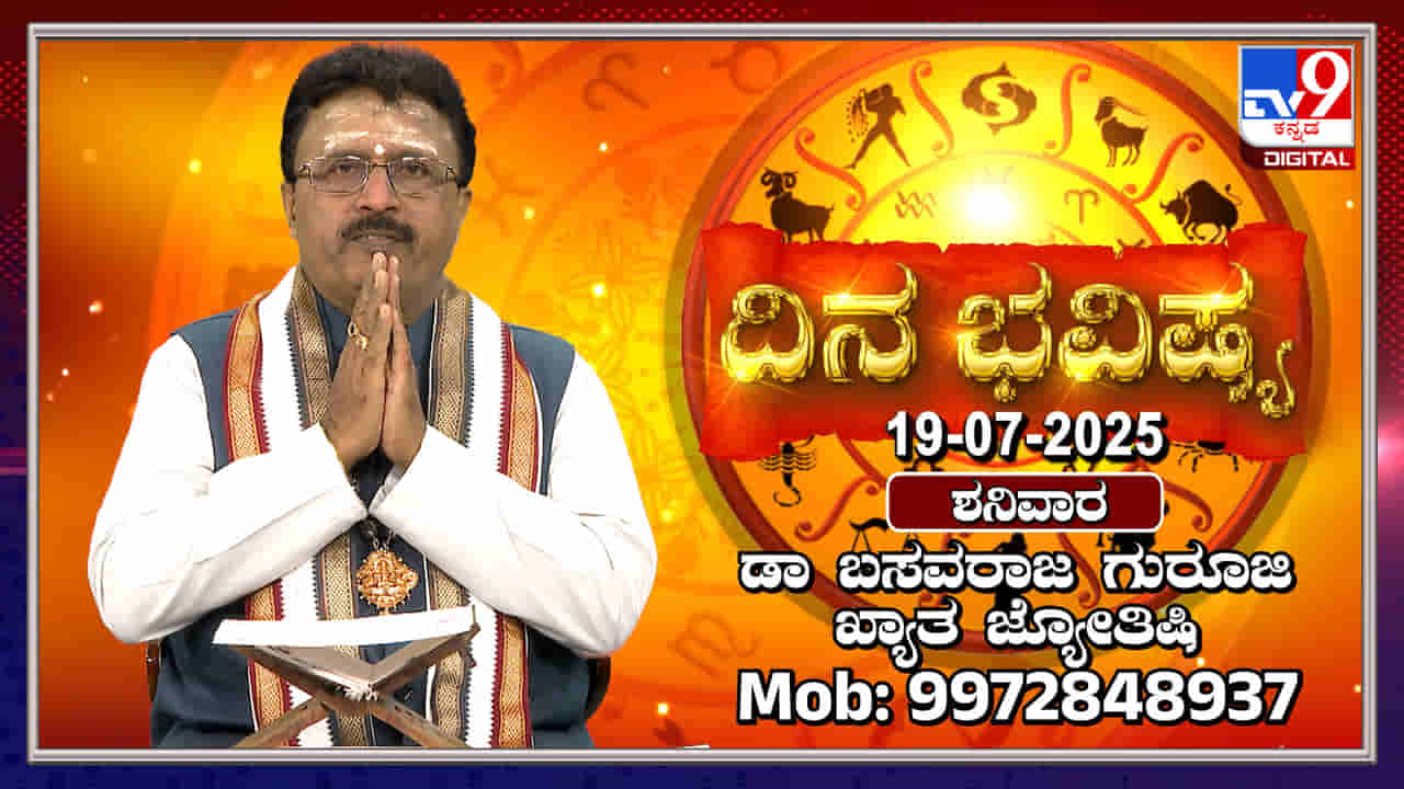 ಬೆಂಗಳೂರು, ಜುಲೈ 19: ಖ್ಯಾತ ಜ್ಯೋತಿಷಿ ಡಾ. ಬಸವರಾಜ ಗುರೂಜಿ ಅವರು ಜುಲೈ 19ರ ದಿನದ ರಾಶಿಫಲವನ್ನು ವಿವರಿಸಿದ್ದಾರೆ. ವಿಶ್ವಾವಸಂತ ಸಂವತ್ಸರ, ದಕ್ಷಿಣಾಯನ, ಆಷಾಡ ಮಾಸ, ಗ್ರೀಷ್ಮ ಋತು, ಕೃಷ್ಣಪಕ್ಷ, ನವಮಿ ತಿಥಿ ಮತ್ತು ಭರಣಿ ನಕ್ಷತ್ರ. ಮೇಷ ರಾಶಿಯವರಿಗೆ ಏಳು ಗ್ರಹಗಳ ಶುಭಫಲವಿದೆ ಎಂದು ಹೇಳಲಾಗಿದೆ. ಆರ್ಥಿಕವಾಗಿ ಉತ್ತಮ ದಿನವಾಗಿದ್ದು, ಕೆಲಸದಲ್ಲಿ ಯಶಸ್ಸು ಸಿಗುತ್ತದೆ. ವೃಷಭ ರಾಶಿಯವರಿಗೂ ಐದು ಗ್ರಹಗಳ ಶುಭಫಲವಿದೆ ಎಂದು ತಿಳಿಸಲಾಗಿದೆ.