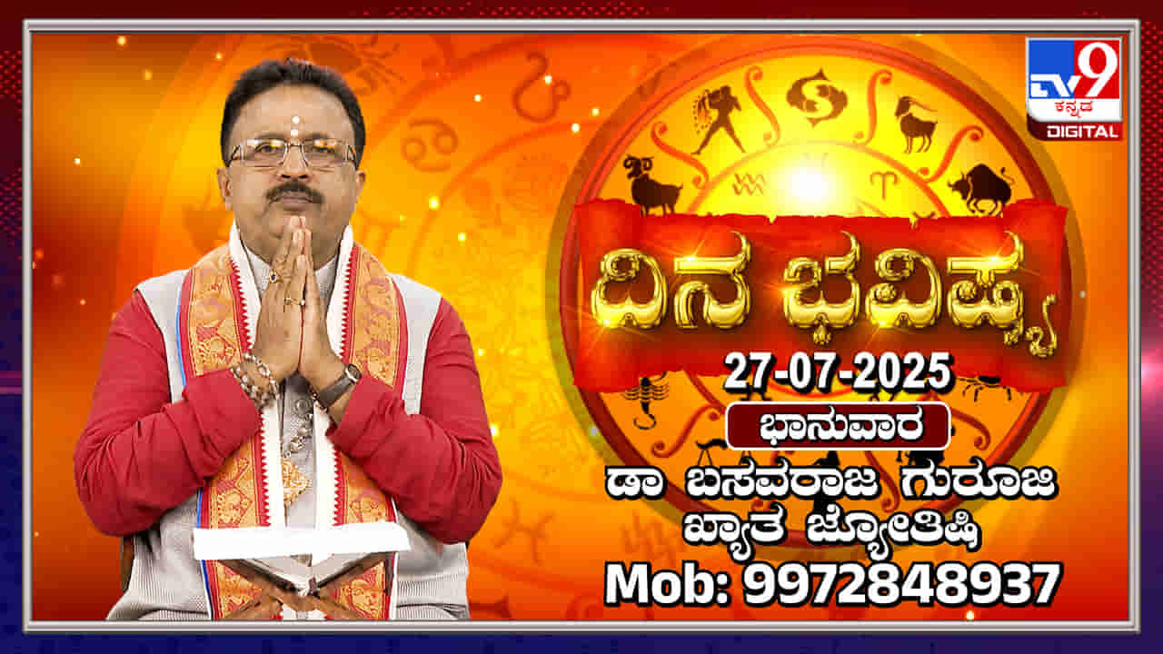ಜುಲೈ 27ರ ದಿನದ ರಾಶಿ ಫಲಗಳನ್ನು ಖ್ಯಾತ ಜ್ಯೋತಿಷಿ ಡಾ. ಬಸವರಾಜ ಗುರೂಜಿ ಅವರು ವಿಡಿಯೋದಲ್ಲಿ ವಿವರಿಸಿದ್ದಾರೆ. ಪ್ರತಿಯೊಂದು ರಾಶಿಯವರಿಗೂ ಆರ್ಥಿಕ, ವೃತ್ತಿಪರ ಮತ್ತು ವೈಯಕ್ತಿಕ ಜೀವನದ ಬಗ್ಗೆ ಫಲಾಫಲಗಳನ್ನು ನೀಡಲಾಗಿದೆ. ಪ್ರತಿಯೊಂದು ರಾಶಿಗೆ ಅದೃಷ್ಟ ಸಂಖ್ಯೆ ಮತ್ತು ಶುಭ ದಿಕ್ಕುಗಳನ್ನೂ ತಿಳಿಸಲಾಗಿದೆ.