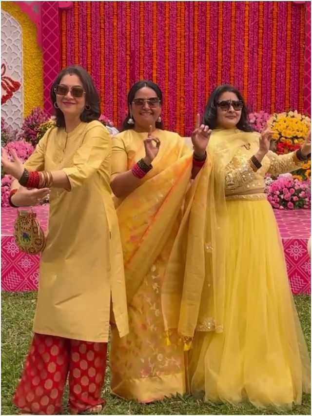 ಜಯಮಾಲಾ ಗೆಳತಿಯರು ವಿವಾಹ ಪೂರ್ವ ಕಾರ್ಯಕ್ರಮಕ್ಕೆ ಹಾಜರಿ ಹಾಕಿದ್ದಾರೆ.