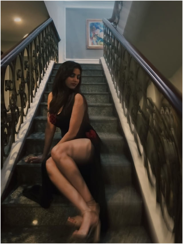 ಮೆಟ್ಟಿಲುಗಳ ಮೇಲೆ ಕುಳಿತು ಈ ರೀತಿ ಪೋಸ್ ನೀಡಿದ ನಿವೇದಿತಾ ಗೌಡ.