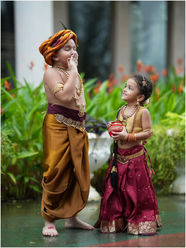 ಕೃಷ್ಣ ರಾಧೆಯರ ರೀತಿ ವೇಷ ಮಾಡಿಕೊಂಡು ಮಕ್ಕಳು ಸಂಭ್ರಮಿಸಿದ್ದಾರೆ.