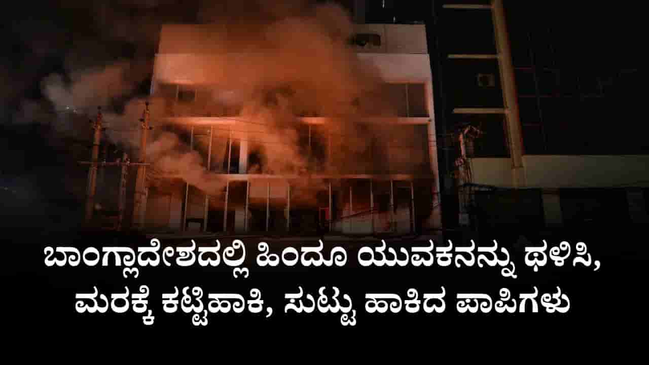 ಢಾಕಾ, ಡಿಸೆಂಬರ್ 19: ಬಾಂಗ್ಲಾದೇಶ(Bangladesh)ದಲ್ಲಿ ಮತ್ತೆ ಹಿಂಸಾಚಾರ ಭುಗಿಲೆದ್ದಿದೆ. ಹಿಂಸಾಚಾರ ಮತ್ತು ಪ್ರತಿಭಟನೆಗಳ ಮಧ್ಯೆ, ಮೂಲಭೂತವಾದದ ಭಯಾನಕ ಮುಖ ಮತ್ತೊಮ್ಮೆ ಮುನ್ನೆಲೆಗೆ ಬಂದಿದೆ. ಮೈಮೆನ್ಸಿಂಗ್ ಜಿಲ್ಲೆಯಲ್ಲಿ ಗುಂಪೊಂದು ಧರ್ಮನಿಂದೆಯ ಆರೋಪದ ಮೇಲೆ ಹಿಂದೂ ಯುವಕನನ್ನು ಕ್ರೂರವಾಗಿ ಕೊಲ್ಲಲಾಗಿದೆ. ಮೃತ ವ್ಯಕ್ತಿಯನ್ನು ದೀಪು ಚಂದ್ರ ದಾಸ್ ಎಂದು ಗುರುತಿಸಲಾಗಿದ್ದು, ಭಲುಕಾ ಉಪ ಜಿಲ್ಲೆಯ ದುಬಾಲಿಯಾ ಪಾರಾ ಪ್ರದೇಶದಲ್ಲಿ ಜವಳಿ ಕಾರ್ಖಾನೆಯಲ್ಲಿ ಕೆಲಸ ಮಾಡುತ್ತಿದ್ದರು. ಭೀಕರ ಘಟನೆಯಲ್ಲಿ, ಗುಂಪೊಂದು ದೀಪು ಚಂದ್ರ ಅವರನ್ನು ಮರಕ್ಕೆ ಕಟ್ಟಿ ಥಳಿಸಿ ಕೊಂದಿದ್ದಾರೆ.