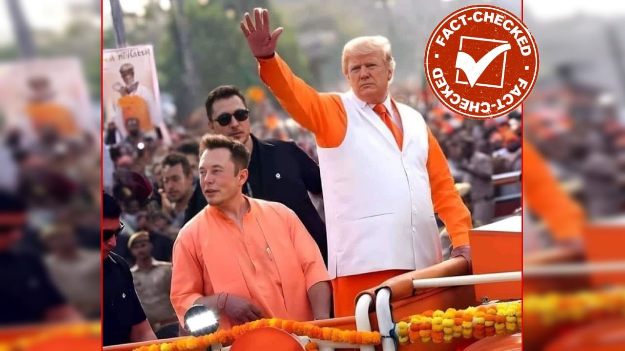 ಟಿವಿ9 ಕನ್ನಡ ತನ್ನ ತನಿಖೆಯಲ್ಲಿ ಈ ಫೋಟೋ ಫೇಕ್ ಎಂದು ಕಂಡುಹಿಡಿದಿದೆ. ಕೇಸರಿ ಬಟ್ಟೆಯಲ್ಲಿ ಕಾಣಿಸಿಕೊಂಡಿರುವ ಟ್ರಂಪ್ ಮತ್ತು ಮಸ್ಕ್ ಚಿತ್ರವನ್ನು ಎಡಿಟ್ ಮಾಡಲಾಗಿದೆ. 2024 ರ ಲೋಕಸಭಾ ಚುನಾವಣೆಯ ಸಂದರ್ಭದಲ್ಲಿ ವಾರಣಾಸಿಯಲ್ಲಿ ರೋಡ್ ಶೋ ನಡೆಸುತ್ತಿದ್ದ ಪ್ರಧಾನಿ ನರೇಂದ್ರ ಮೋದಿ ಮತ್ತು ಯೋಗಿ ಆದಿತ್ಯನಾಥ್ ಅವರ ಫೋಟೋ ಇದಾಗಿದೆ.