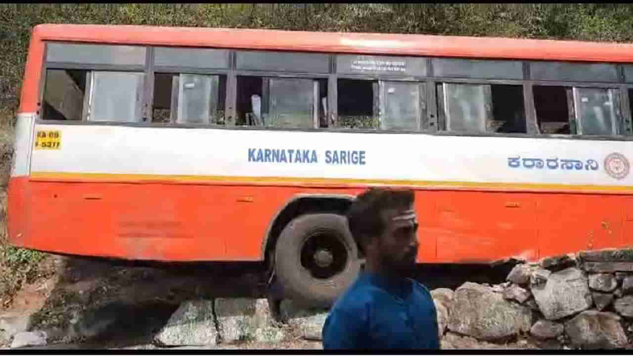ಮಹದೇಶ್ವರಬೆಟ್ಟದ ತಾಳಬೆಟ್ಟ ತಿರುವಿನಲ್ಲಿ KSRTC ಬಸ್ ಬ್ರೇಕ್ ಫೇಲ್ ಆಗಿದೆ. ಕೂಡಲೇ ಎಚ್ಚೆತ್ತ ಡ್ರೈವರ್ ಉಪಾಯದಿಂದ ಬಸ್ನ್ನು ಡಿವೈಡರ್ ಮೇಲೆ ಹತ್ತಿಸಿದ್ದಾನೆ. ಇದರಿಂದ ಬಸ್ ನಿಂತುಕೊಂಡಿದ್ದು, ಅದೃಷ್ಟವಶಾತ್ ಬಸ್ನಲ್ಲಿ 60ಕ್ಕೂ ಹೆಚ್ಚು ಜನರು ಬಚಾವ್ ಆಗಿದ್ದಾರೆ. KA 09 F 5311 ಸಂಖ್ಯೆಯ ಮೈಸೂರು ಡಿಪೋದ KSRTC ಬಸ್, ಮಲೆ ಮಹದೇಶ್ವರ ಬೆಟ್ಟದಿಂದ ಕೊಳ್ಳೇಗಾಲಕ್ಕೆ ತೆರಳುತ್ತಿತ್ತು.