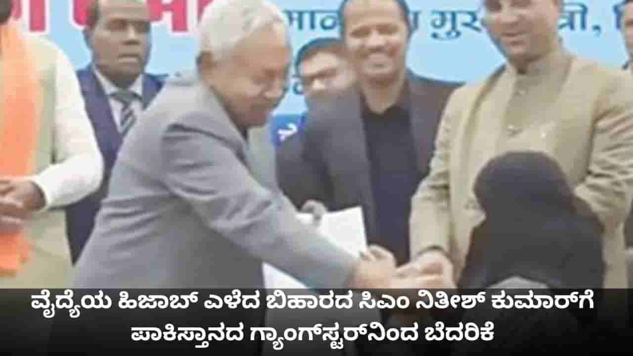 ಇದೀಗ ಈ ಹಿಜಾಬ್ ವಿವಾದ ಪಾಕಿಸ್ತಾನದ ಅಂಗಳವನ್ನೂ ತಲುಪಿದೆ. ಮಹಿಳೆಯ ಹಿಜಾಬ್ ಎಳೆದ ಘಟನೆಗೆ ಸಂಬಂಧಿಸಿದಂತೆ ಬಿಹಾರದ ಮುಖ್ಯಮಂತ್ರಿ ನಿತೀಶ್ ಕುಮಾರ್ ಅವರಿಗೆ ಪಾಕಿಸ್ತಾನ ಮೂಲದ ಗ್ಯಾಂಗ್ಸ್ಟರ್ ಬೆದರಿಕೆ ಹಾಕಿದ್ದಾರೆ ಎಂದು ದೂರು ದಾಖಲಾಗಿದೆ.