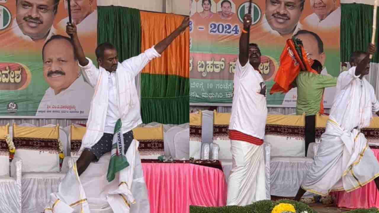 ಮಧುಗಿರಿ ಬಿಜೆಪಿ ಸಮಾವೇಶದಲ್ಲಿ ಎಣ್ಣೆ ಕಿಕ್ನಲ್ಲಿ ಲುಂಗಿ ಡ್ಯಾನ್ಸ್: ವಿಡಿಯೋ ನೋಡಿ